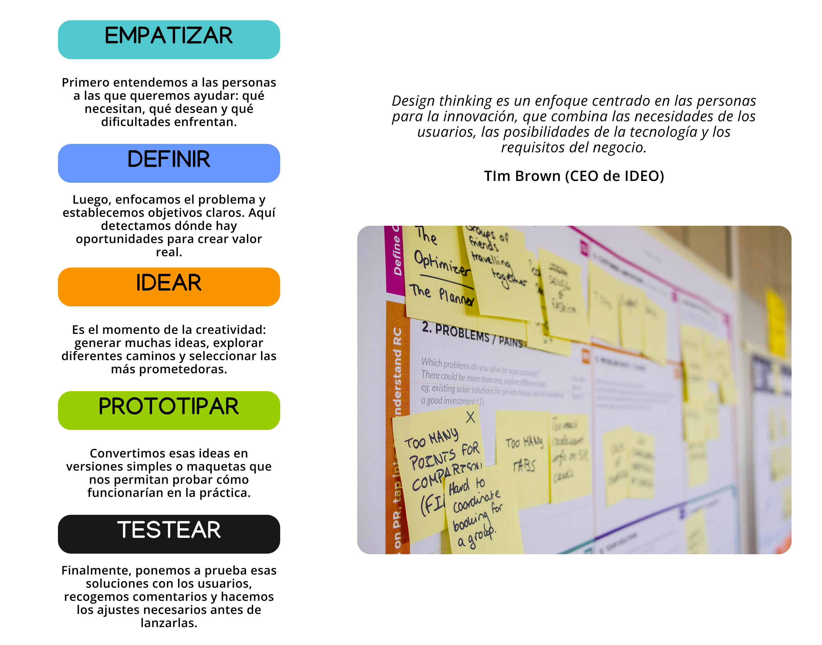 En Control D aplicamos la metodología de Design Thinking para entender a fondo tus necesidades, descubrir lo que realmente buscan tus clientes y transformar esas ideas en un plan digital estratégico. Antes de diseñar una sola línea, escuchamos, analizamos y construimos junto a ti. Porque un sitio web no solo debe lucir bien: debe resolver problemas, conectar y generar resultados.